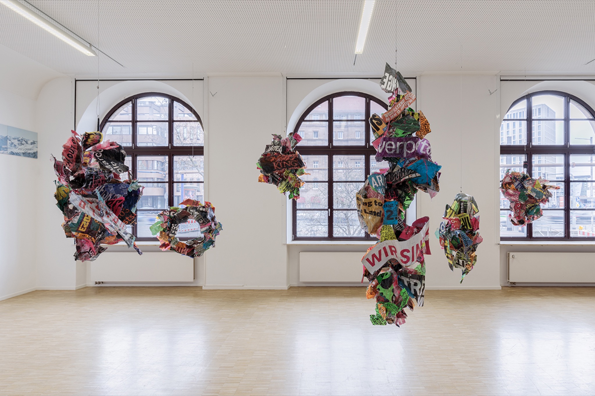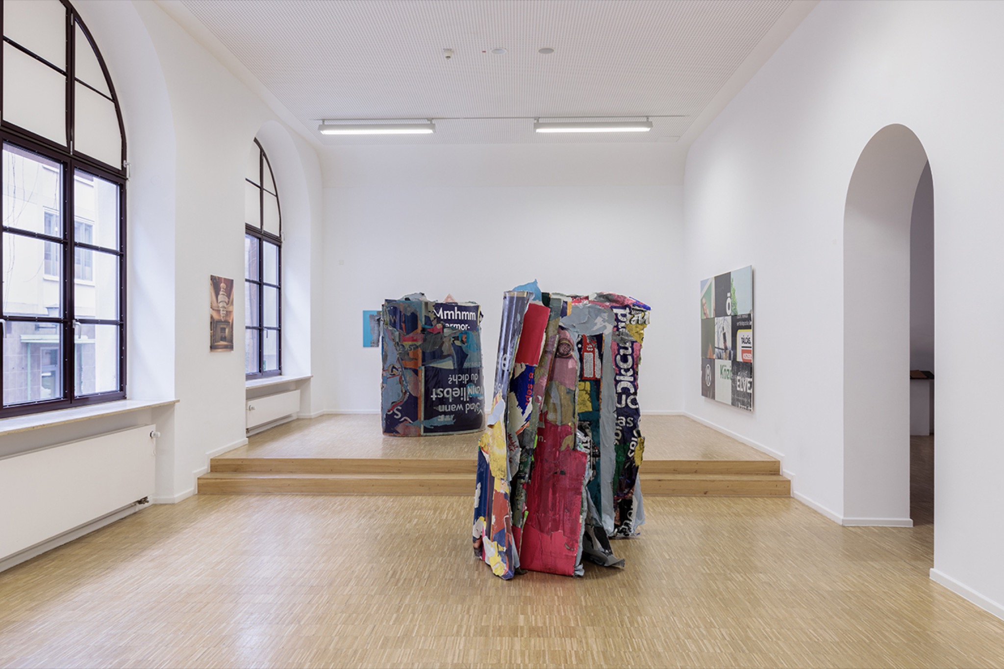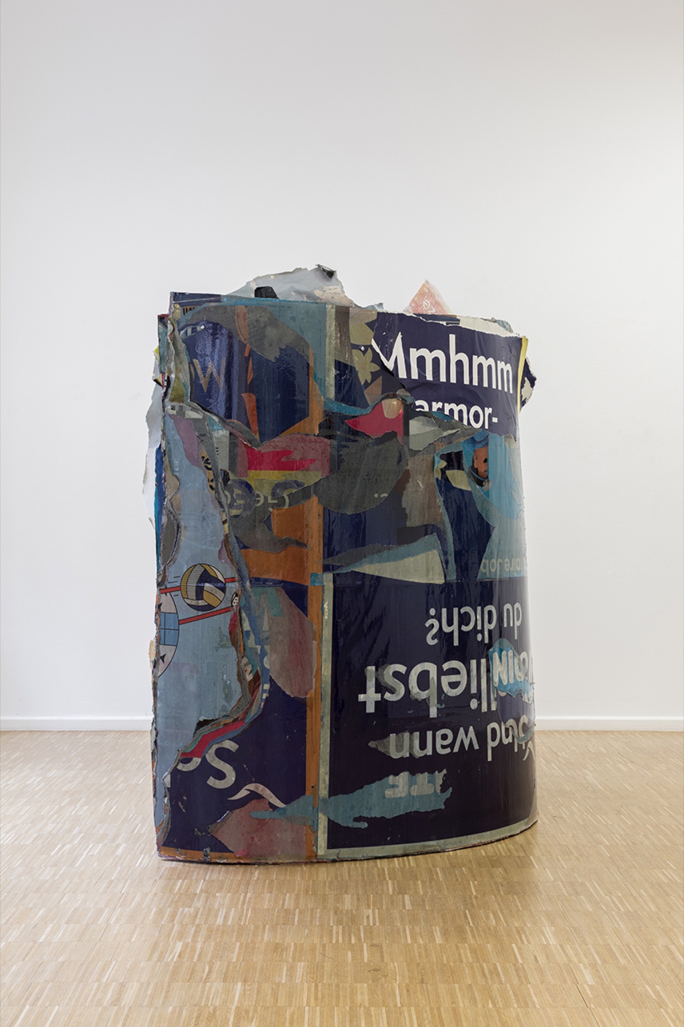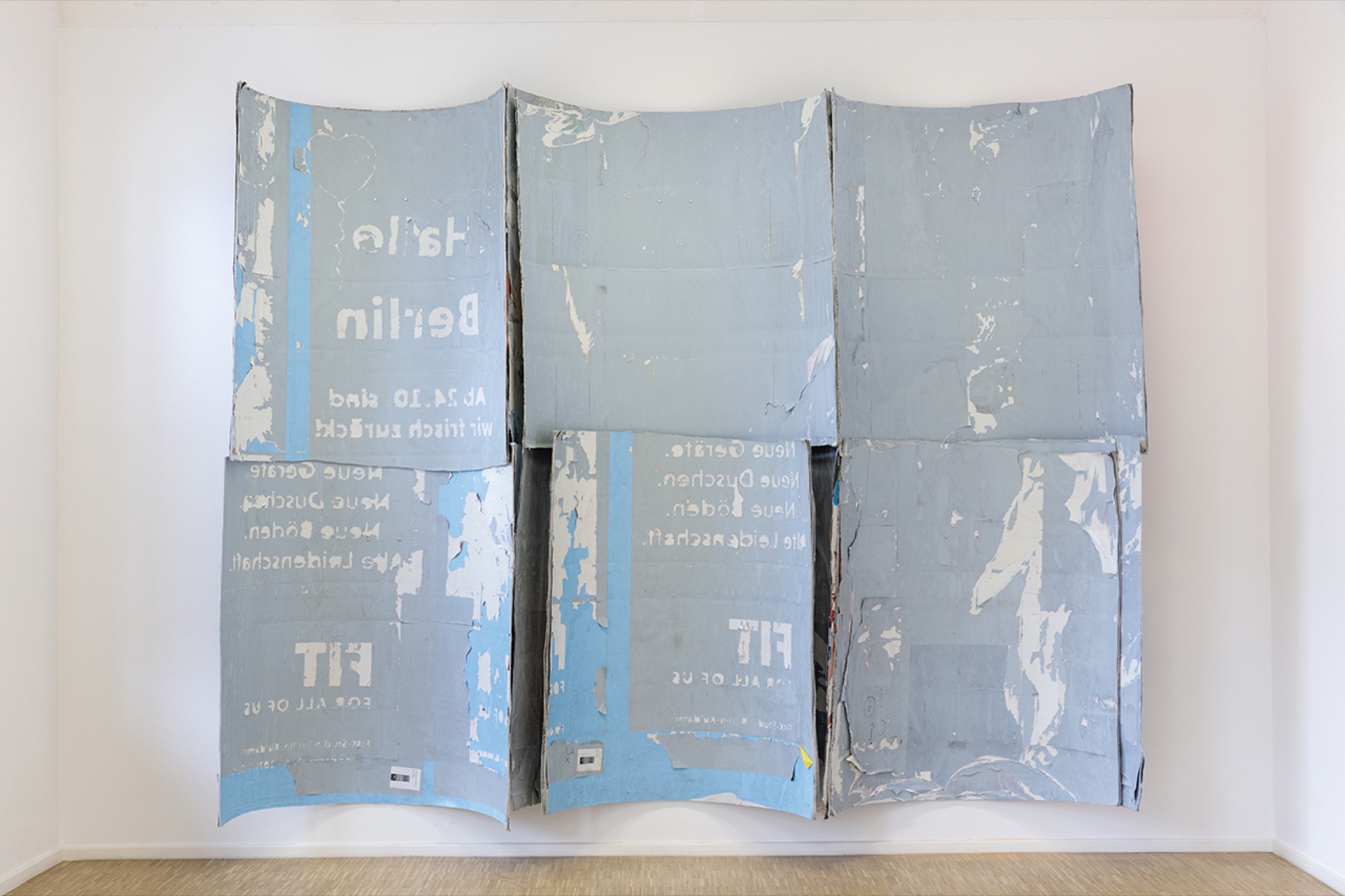 Wenn die Künstlerin ihre Plakatwände im öffentlichen Raum spottet und dann sowohl visuell als auch haptisch durch die verschiedenen Schichten blättert, dann hat das Analogien zum Scrollen durch aktuelle soziale Medien. Die Werbebotschaften und Bilder stellen sich als Puzzlestücke unseres gesellschaftlichen Zusammenlebens dar, gefunden auf den Straßen Berliner Kieze…..