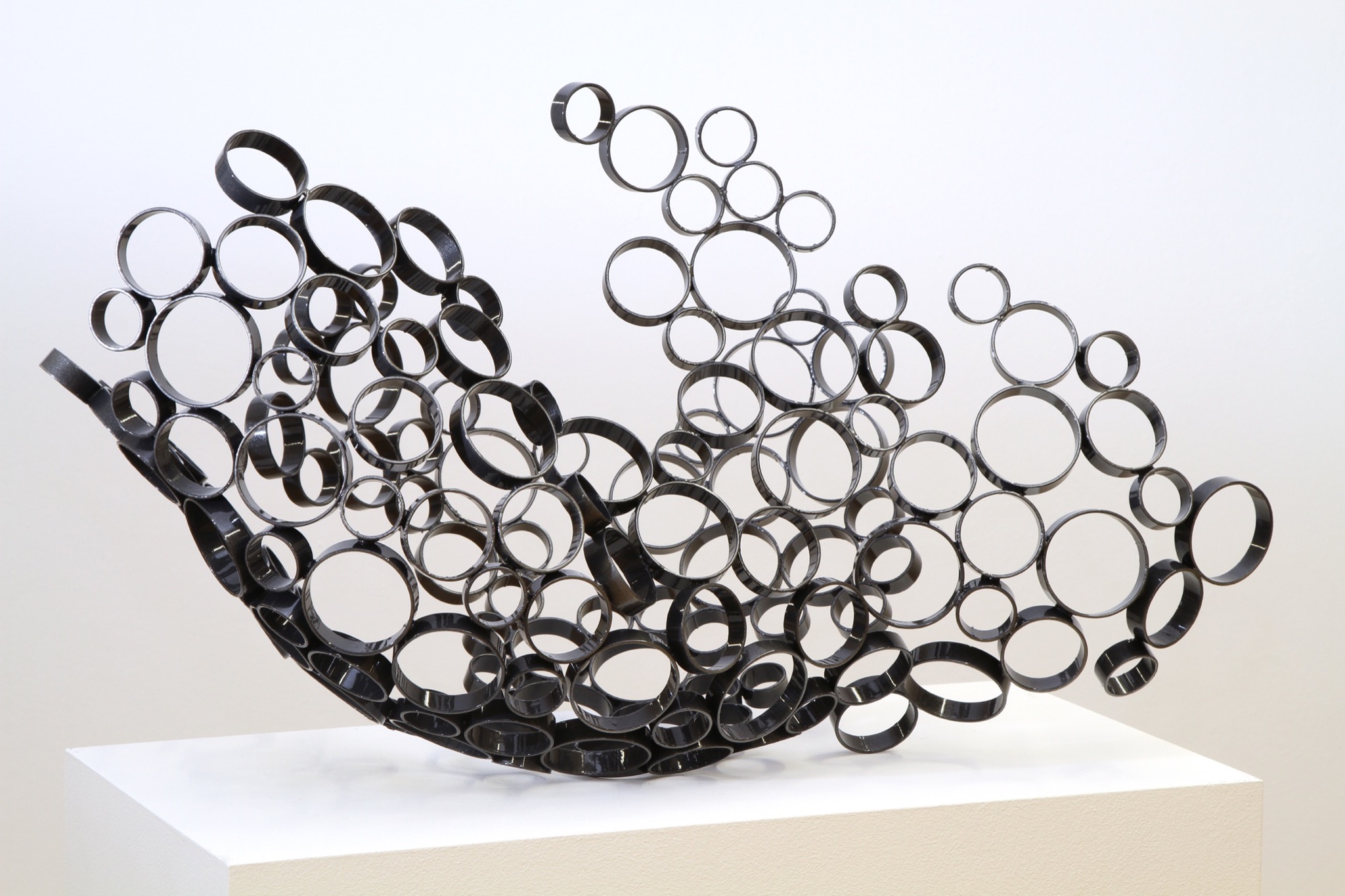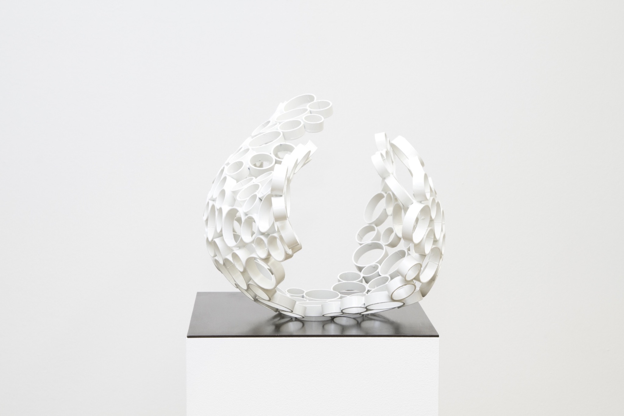 gearbeitet. Dabei war mir wichtig, aus schwerem Material fast leichte und schwebend-anmutende Arbeiten zu schaffen, eher ein Auflösen von Form, eine Leichtigkeit